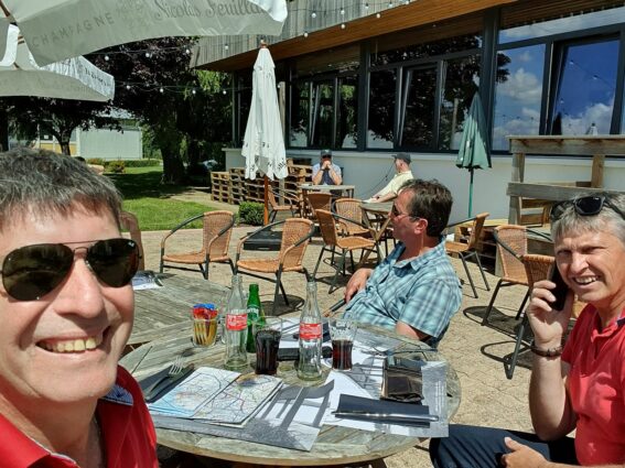 In het restaurant bij de aerodrome maken we kennis met de onthaastte Franse sfeer mentaliteit. Niet erg, want gezien het warme weer reageren we vandaag allen wat trager.