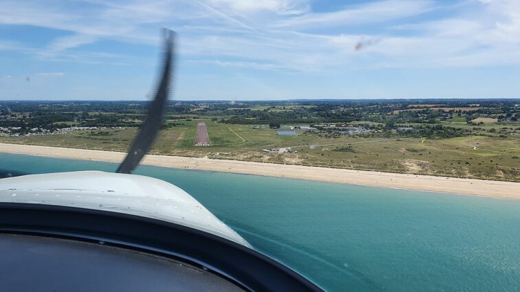 Onderweg stellen we helaas vast dat het vliegveldje ten zuiden van Boulogne-Sur-Mer (Alprech, Le Portel) nog steeds volledig ingenomen is door caravans en woonwagens. Wie een vlieguitstap met een romantische picknick aan het strand gepland heeft is er aan voor de moeite.Over het prachtige natuurreservaat van de baai van de Somme vliegen we terug landinwaarts naar Abbeville (LFOI) waar we opgedragen worden te landen op de 20 hoewel de andere richting evenveel gebruikt wordt. Maar dit levert geen enkel probleem op.